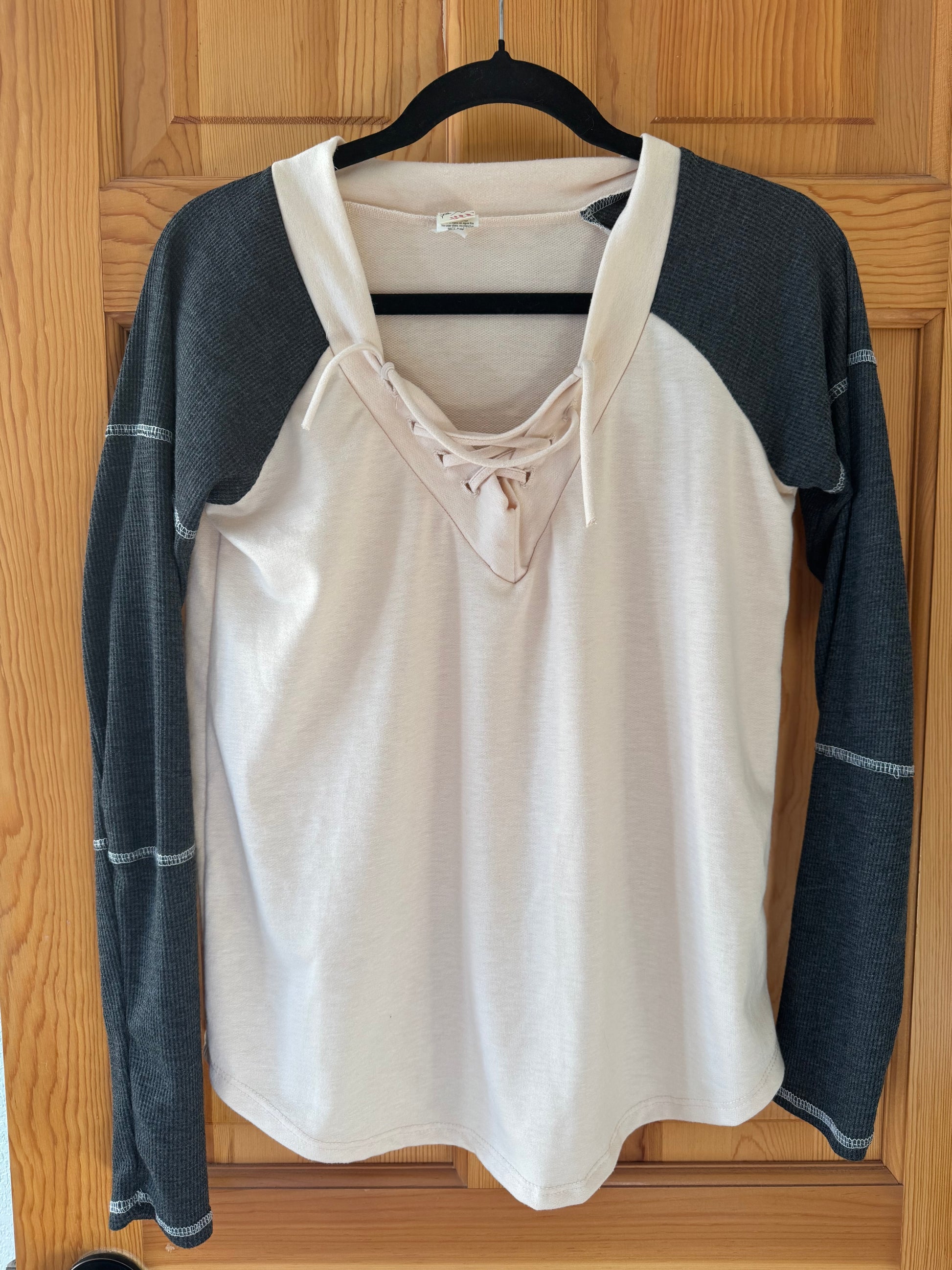 7th Ray pink & grey long sleeve top with trendy criss-cross front – Women’s Medium