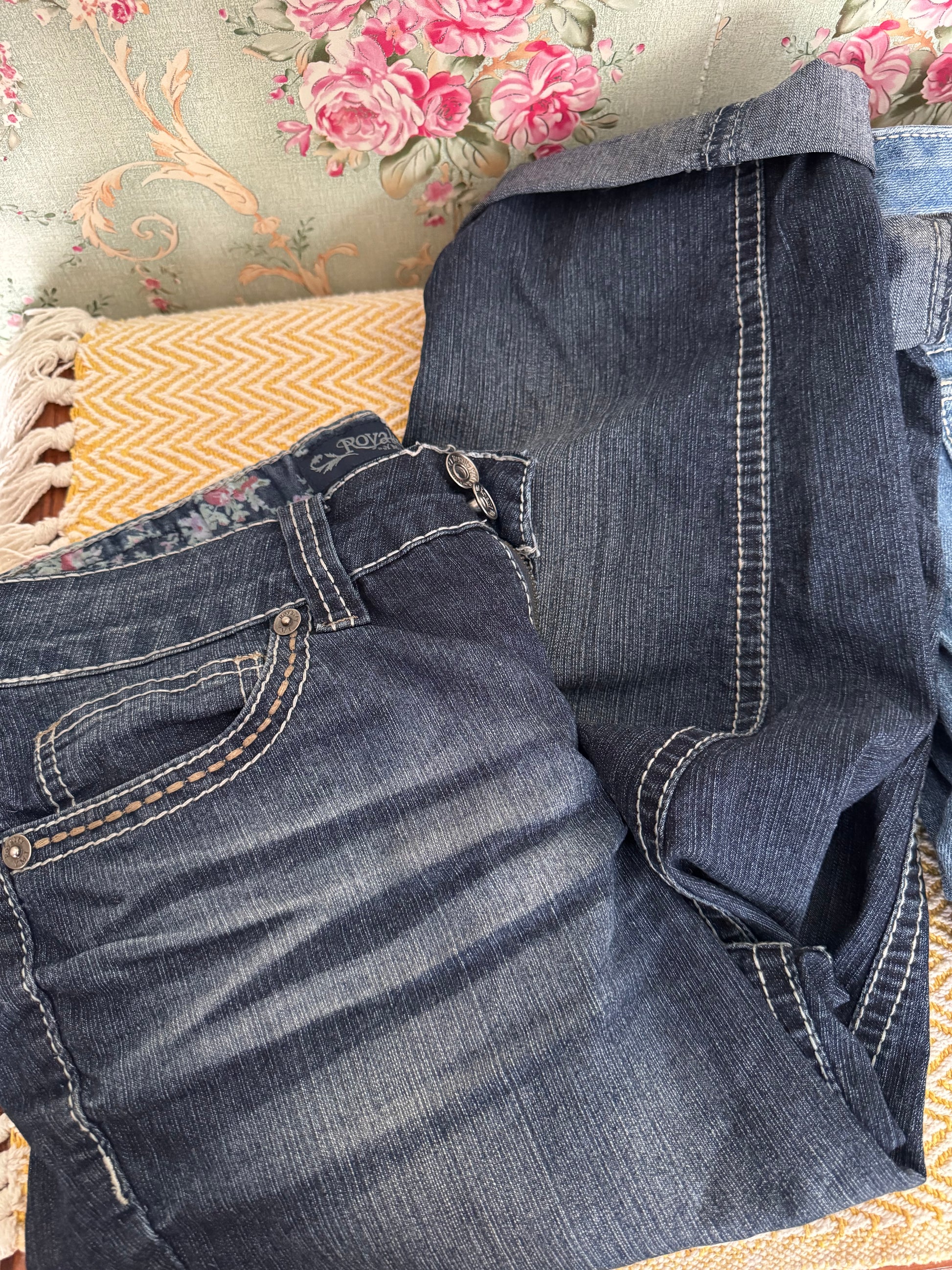 Great mixed lot of four gently used women’s denim pieces in assorted styles and fits. Perfect for everyday wear with a variety of rises and leg styles.